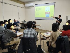 12月12日午後のワークに、神奈川県で保険の営業マンをされている高橋さんをお招きして、営業職についてお話をして頂きました。