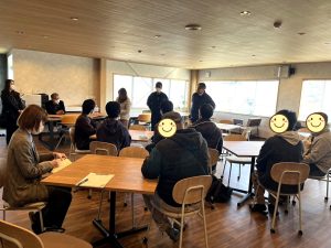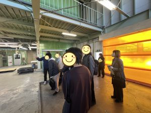 前半は企業の方と工場をまわりながら案内していただきました。後半はセブナグループ様のおしゃれな休憩スペースで質問タイムを行いました。